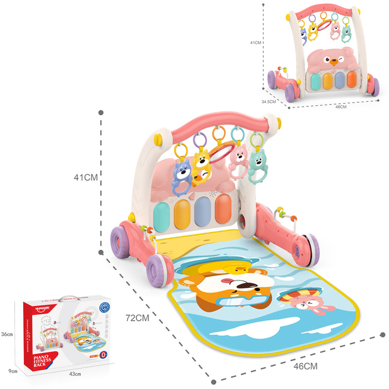 Este caminador infantil de doble funcionalidad integra un sistema de apoyo ergonómico con una alfombra sensorial interactiva, diseñado para facilitar el desarrollo motriz durante la etapa de gateo y primeros pasos. La combinación de ambas características proporciona estimulación cognitiva simultánea mientras el bebé fortalece su estabilidad y coordinación. Una solución práctica que maximiza el espacio y optimiza el aprendizaje temprano.